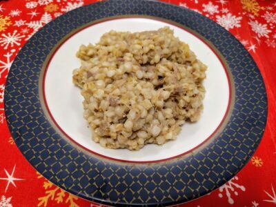 Once it is done ad some raisins and it will be ready to enjoy Qeshqek (Chicken with Wheat)!